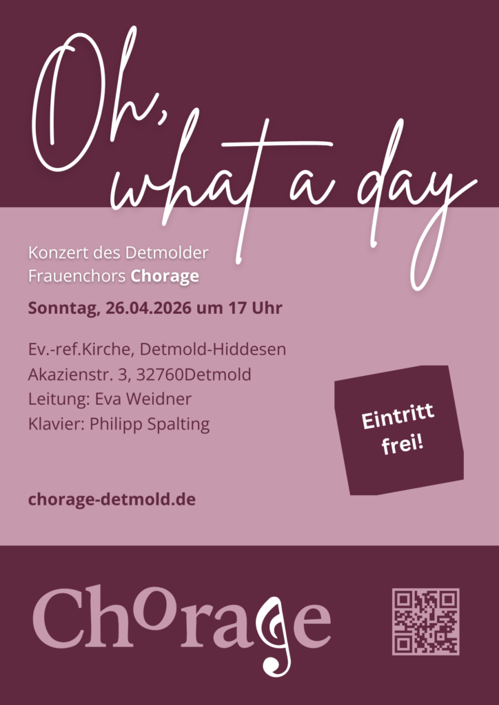 Unter dem Titel „Oh, what a day“ nimmt der Frauenchor Chorage Sie mit auf eine musikalische Reise durch Pop, Musical, Jazz und Gospel.
